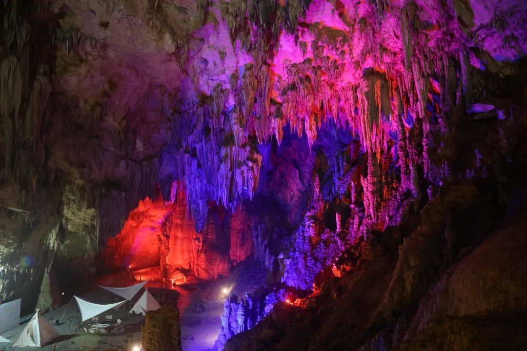 这里海拔在800——1000米之间,隐匿在郁郁葱葱的山林之中,在这里,大家可以露营、打卡、吃火锅、烤烧烤等,体验乡村乐趣,一览溶洞奇观。现场负责人敬晓辉说,无想山玄武洞距离县城12分钟车程,夏季气温比彭水县城低10多摄氏度,是夏季休闲娱乐、避暑纳凉的好去处。