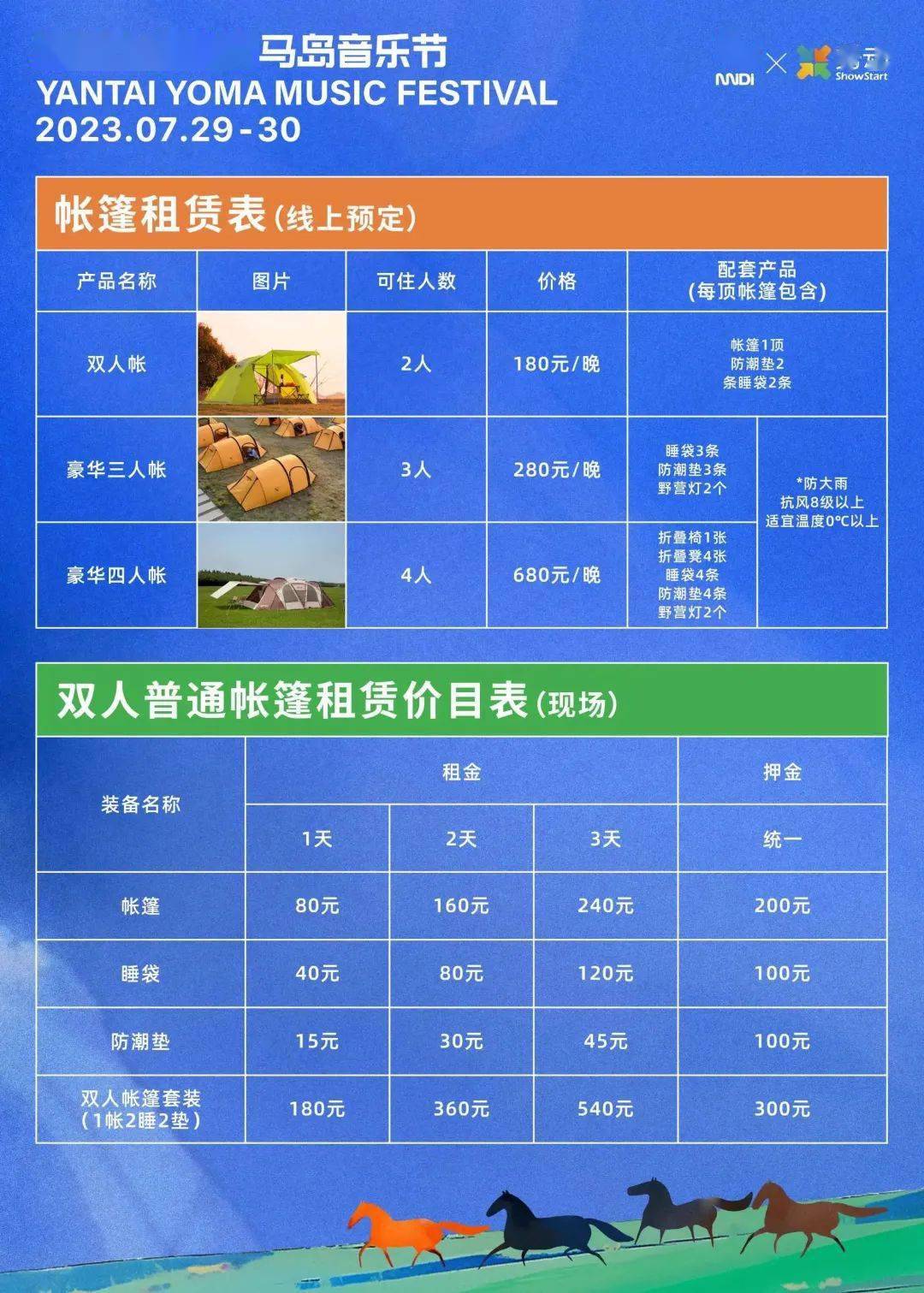 5. 帐篷及配套设备的租金和押金可使用现金、支付宝、微信支付;