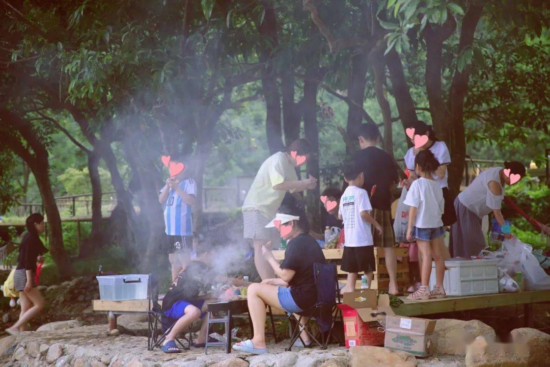 在清水河的周边,散落着大大小小的露营营地,在营地里或周边撑起天幕帐篷、打开折叠桌椅、林间饮茶、林荫纳凉……