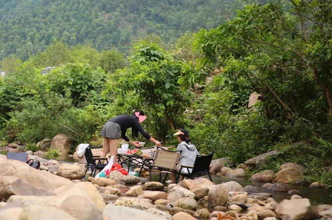 在这里,游客嬉游于青山绿水中,享珍馐于炉火上,大口呼吸负氧离子,行走绿荫间,憩息林道旁,静听山风物语,坐看云卷云舒。