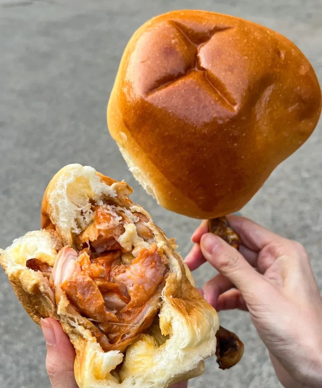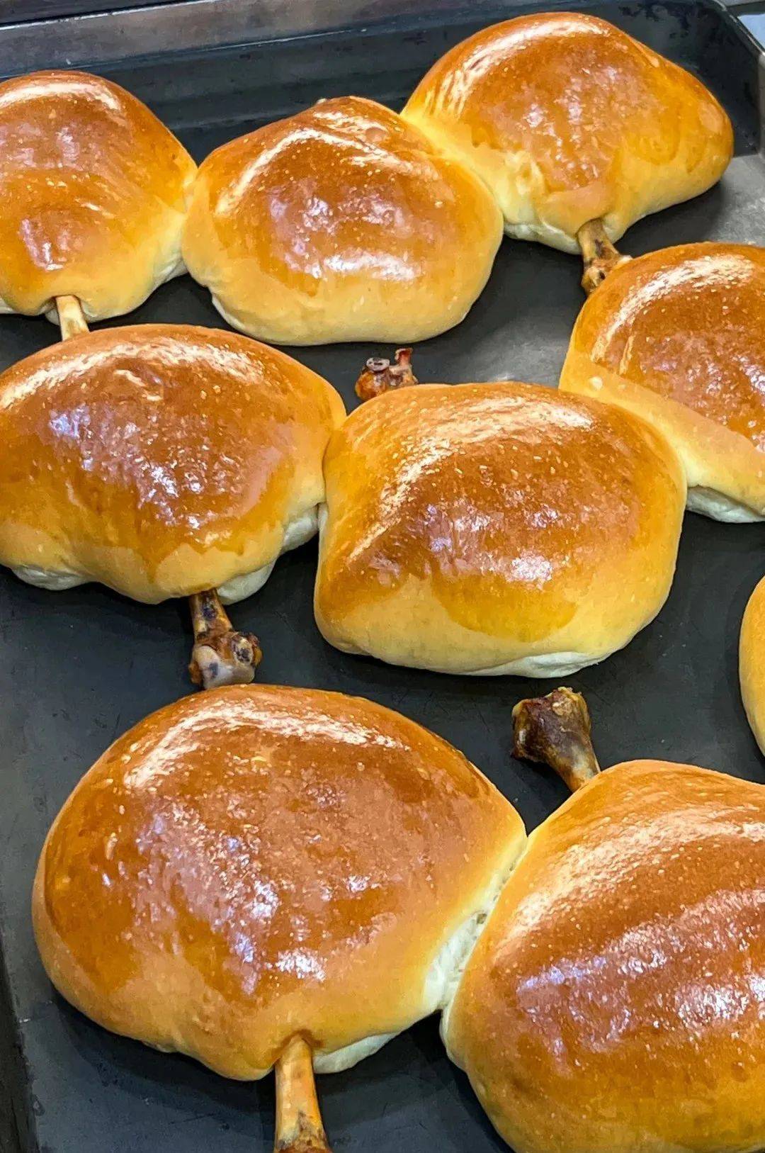 也有真的用鸡腿作为馅料的鸡腿面包,面包入口松软,鸡腿鲜嫩美味,口感很棒。