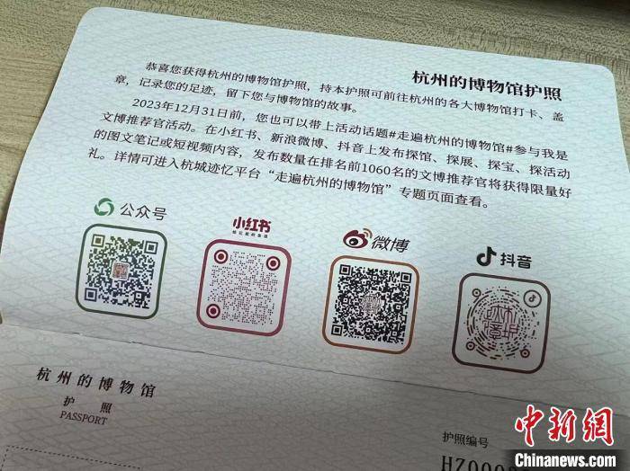 据其介绍,活动期间,市民游客在小红书、新浪微博、抖音任意一个平台,带上活动话题#走遍杭州的博物馆#发布自己在杭州的博物馆探馆、探宝、探展、探活动的图文笔记或短视频,并将链接提交到“杭城迹忆”平台“走遍杭州的博物馆”专题页即可参与。想获得“护照”的市民游客,可按照活动公告指示方法申领。