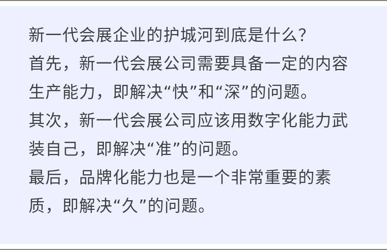 2021年3月23日,《新一代会展企业的护城河到底是什么》,作者说: