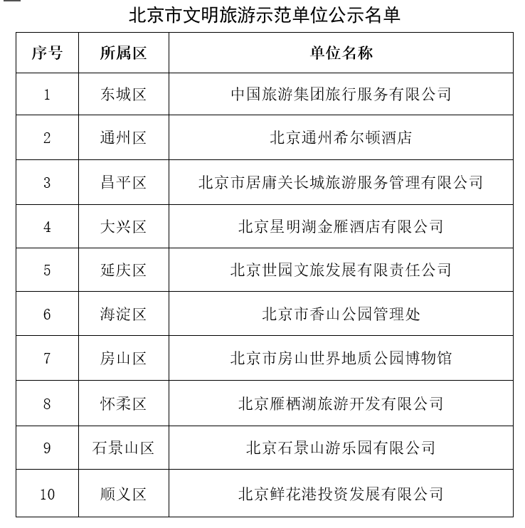 原标题:北京市文明旅游示范单位公示