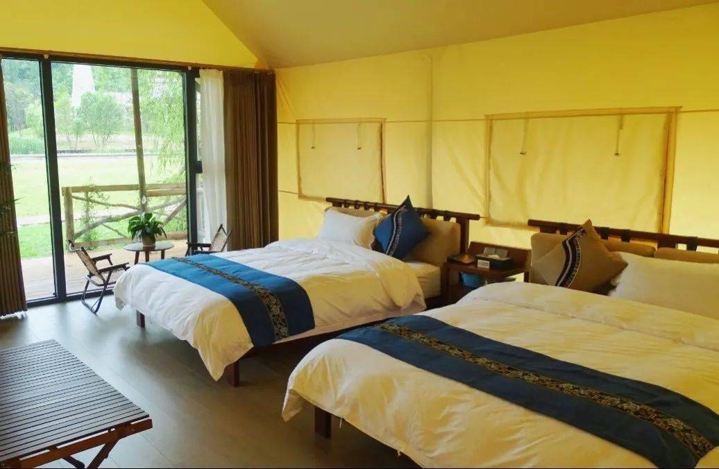 帐篷酒店的基础设施秉承家庭式设计理念, 参照五星级酒店进行高标准配置。星级酒店家具、酒店布草、淋浴卫生间、折叠休闲椅与桃木色的野外露营桌、超大露台……这颜值,就问你适不适合拍照~