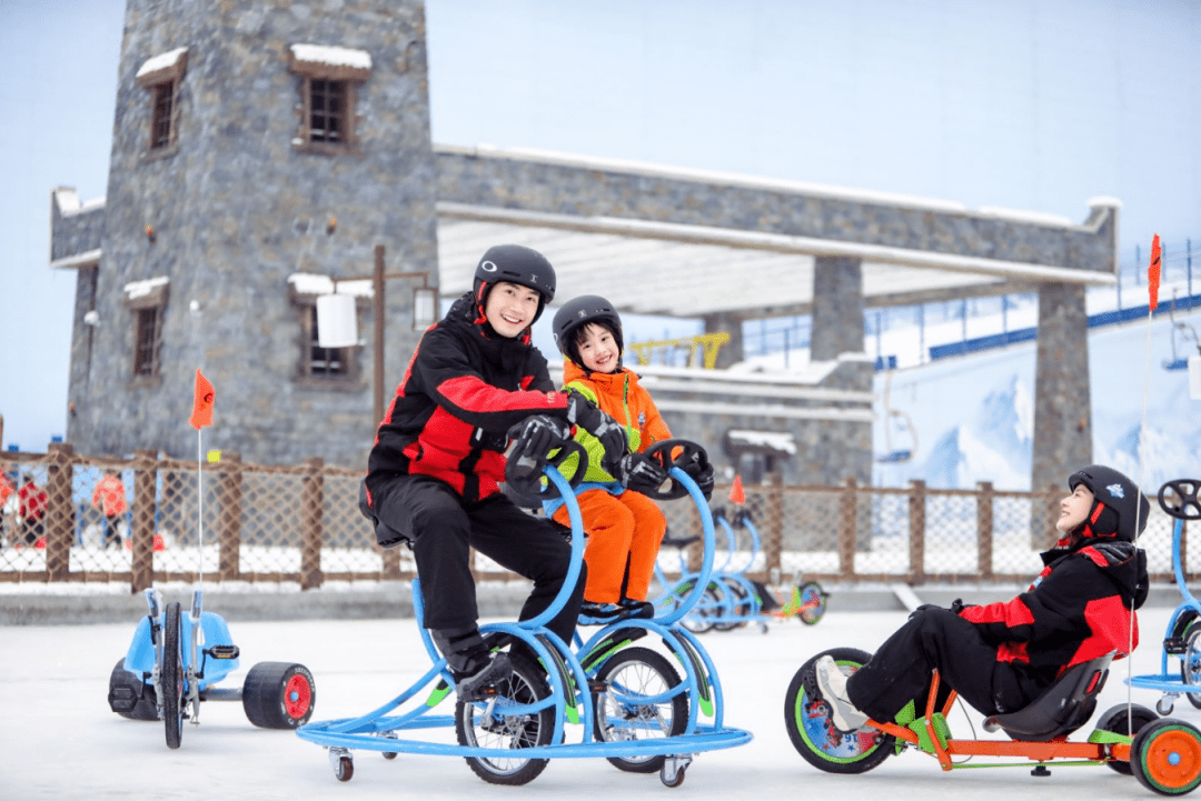 滑雪区就涵盖了儿童道、初中高级7条雪道,满足各级爱好者需求,刺激又好玩。不会滑雪也没关系,雪世界里还有雪地坦克、冰上碰碰车等十余种娱雪项目可以玩耍!