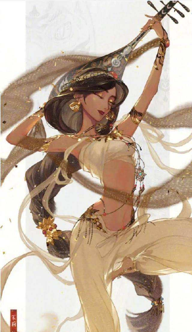 虽说是换上“中国风”服装,但是茉莉公主这套充满古代舞女的二段式轻纱服饰,却还是让小哔感觉到她身上原本的阿拉伯气息……不过话说回来,茉莉修长的身材还真是很合适这种轻盈风的古装,这背着琵琶翩翩起舞的模样,看上去总是那么让人心情愉悦。若是茉莉的脸上再蒙上一层轻纱的话,瞬间就能凸显出一种“犹抱琵琶半遮面”的女神气质,真是让人心醉。