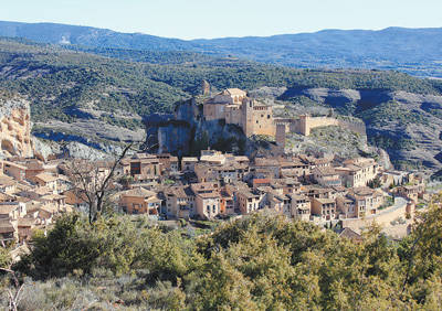 从阿拉贡自治区首府萨拉戈萨驱车沿比利牛斯山脉方向前进,约一个半小时后,隐藏在维罗河峡谷的阿尔克萨尔小镇终于露出真容:约660米高的山丘上,清一色的土黄色石头建筑沿山势排开,山顶的城堡静静诉说着沧桑变幻。