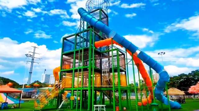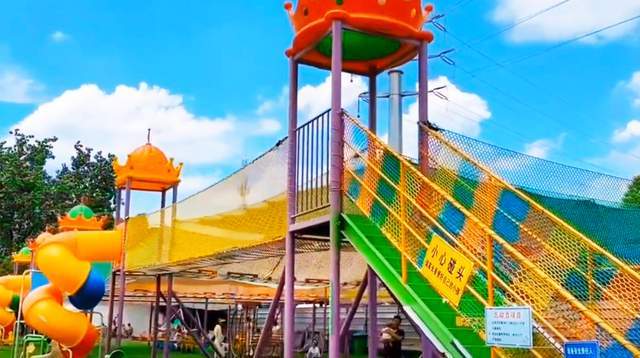 而进到欢悦谷亲子乐园里,最好的方式是提前预习,挑选出感兴趣的项目,然后根据排队情况选择玩耍。比如这边有空中堡垒,主体是一座金属架子,撑起魔幻的城堡,分成左右两边的滑道。小朋友来时,可以从步梯上去,然后通过栈桥走到两边,直接沿着塑料管道滑下来。既能体验攀登,又有滑道的刺激,而橡胶和塑料防护材料的补充,保证小朋友安全玩耍。当然,这个项目推荐在阴天玩耍,会更加凉快。