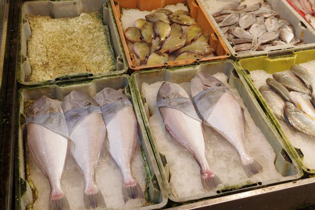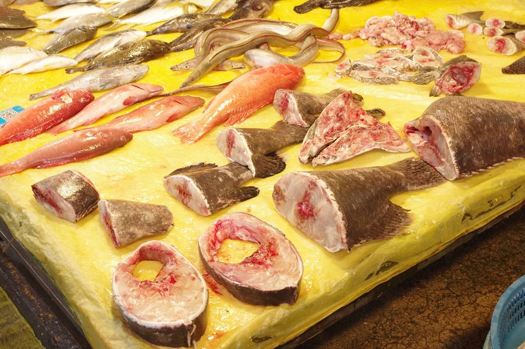 近处是分解的鳘鱼(鮸),红色的是东星斑