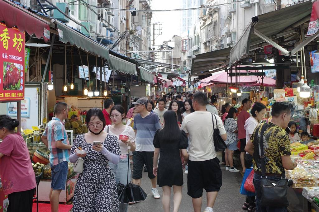 第八市场人潮如织,看模样似乎外地游客比本地买菜的人还多