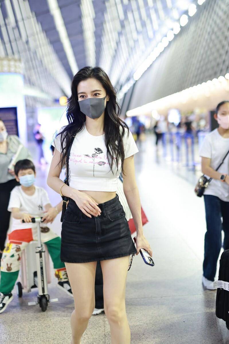 值得一提的是,34岁的Angelababy,身穿一条露腰T恤,一条热裙,看起来长腿非常抢眼。