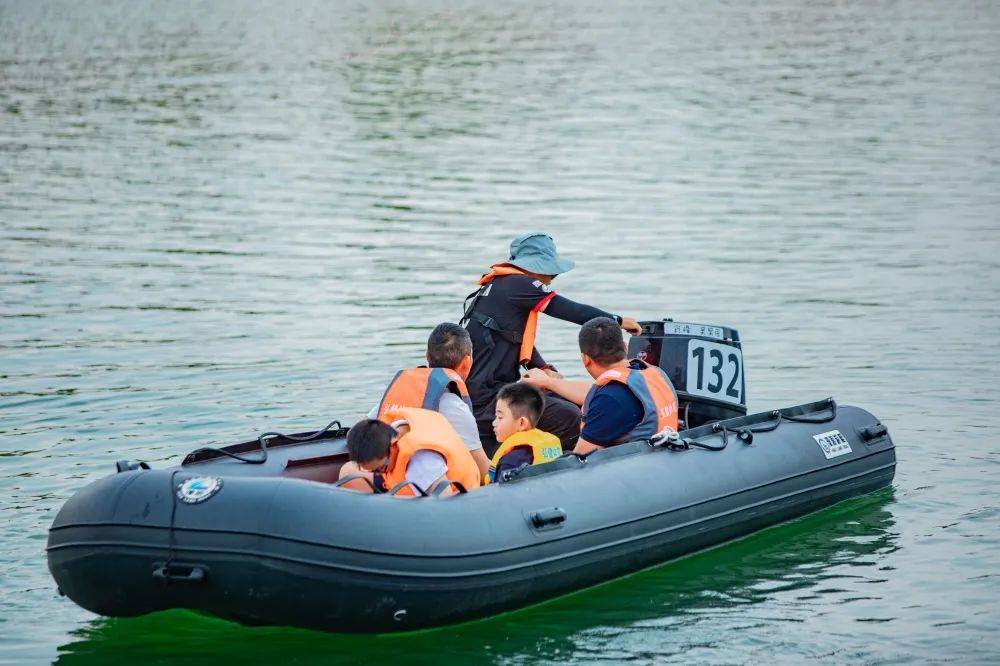 在宽阔的水面上,穿上救生衣,坐进橡皮艇,听马达激昂的轰鸣声,感受微风拂面的舒爽,享受水上冲锋的速度与激情,体验水花飞溅的乐趣。或是和朋友说说笑笑,时不时来场“水仗”……一场橡皮艇运动,在惬意中带走炎热,在欢笑中畅享清凉。