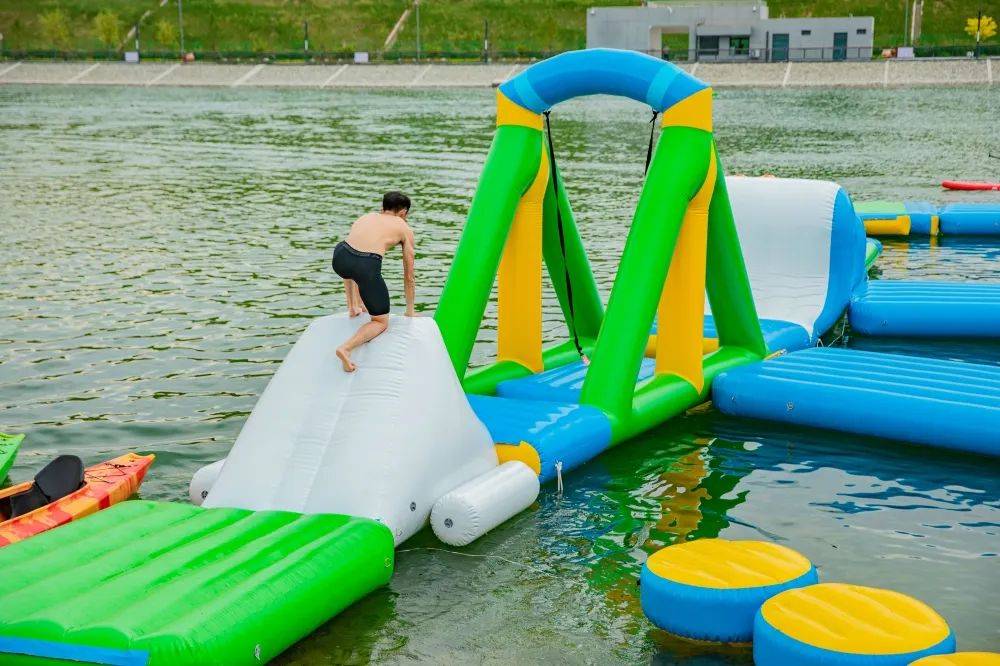 精心设计的水上赛道、勇攀高峰重重考验、好玩又刺激的各个关卡……在水上冲关项目中,一个个参与者奋勇前冲,点燃这个夏日最炫的激情。或是急速前进、孤注一掷,或是飞檐走壁,在热情的欢呼中,水上游戏的乐趣被激发,精彩纷呈的画面被定格。