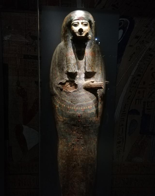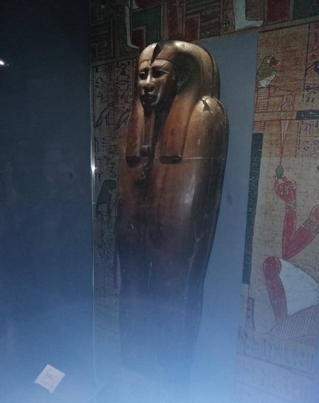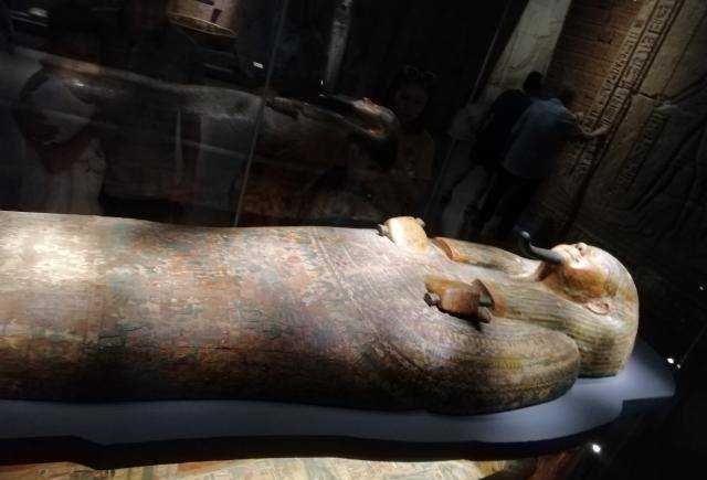 这是放置木乃伊的木棺,他们的棺材和我们的区别很大,直接做成人形。