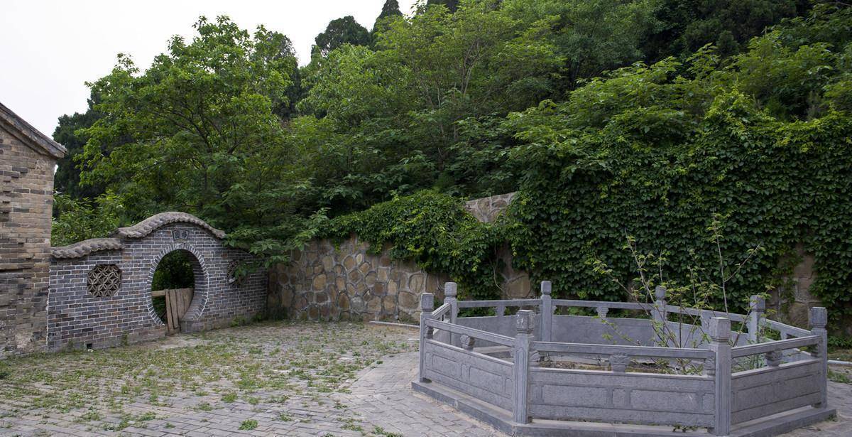 再往后便是第二院落,以前是座三佛殿,后来被拆除了,只剩下东西两侧的寮房,在三佛殿旧址身后是一处崖壁,崖壁上有两个小泉洞,名为“止涓”、“问津”。当定林泉的泉水从石洞内缓缓流出时,还能听到潺潺的流水声,悦耳动听,不过定林泉如今已经名存实亡了。三佛殿的旧址前方也有一株松柏树,不过令人惊奇的是,它是生长在一棵枯死的柏树的树桩内的。