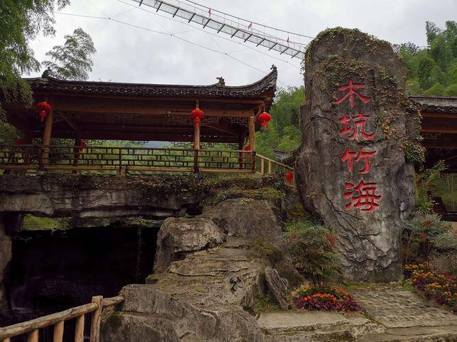 木坑方圆数十里均为大毛竹,茫茫竹海,阵阵绿波衬托着数十间白墙黑瓦的徽派楼舍。木坑竹海又称“滴翠谷”,四面环竹,郁郁葱葱,形如金斗,聚财不漏,十分美丽。雨后观景,翠竹深处,白云人家;晴观日出,有如黄山云海,翠浪波涛;谷中赏月,仿佛天上人间.环境清新、幽静,景色怡人。进入竹海,境内有六谷十景,身临其境,游人恍若置身于如梦如幻的世外桃源之境。