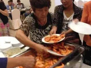 可以很简单地说就是,自助餐是不可能会吃回本的。就算你再怎么吃都一样,大妈们在自助餐里面为了吃回本,专挑贵的吃。在国内虾是比较贵的食材,又好吃!所以大妈看一看到虾就扑上去用盘子捞。