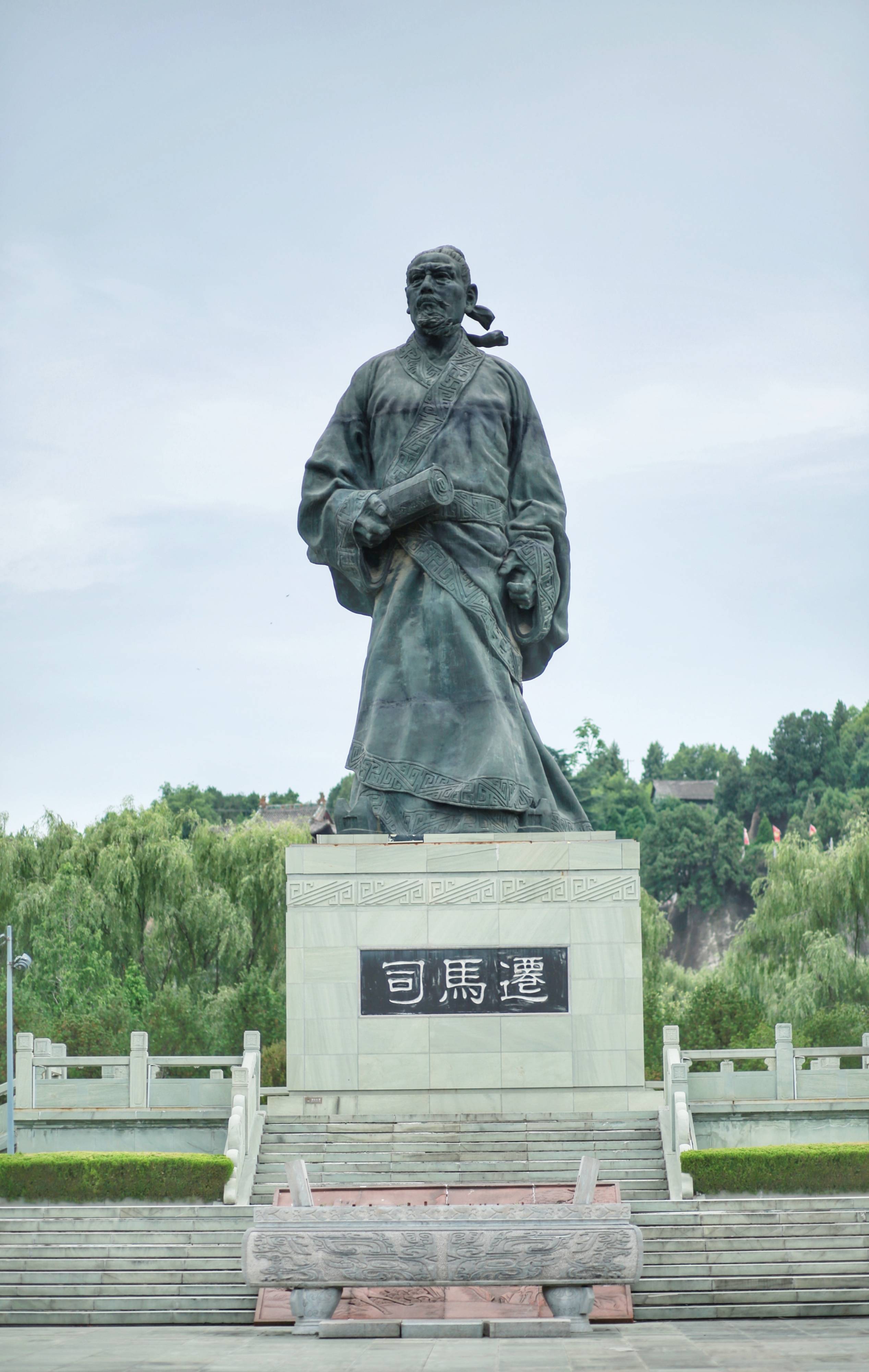 在沿黄公路边上,韩城市芝川镇,独立山岗之巅。枕河听涛,史太公长眠之地、黄河、沿黄之路,就这样,彼此相伴了两千余年。这里是一座规模宏大的景区,山下有新建设的广场。广场两侧,按照《史记》十二本纪顺序,修建了石雕群像,从传说的三皇五帝开始,夏商西周三代,春秋与战国,秦和始皇帝,项羽和汉高祖,吕后,文景之治,再到汉武帝。