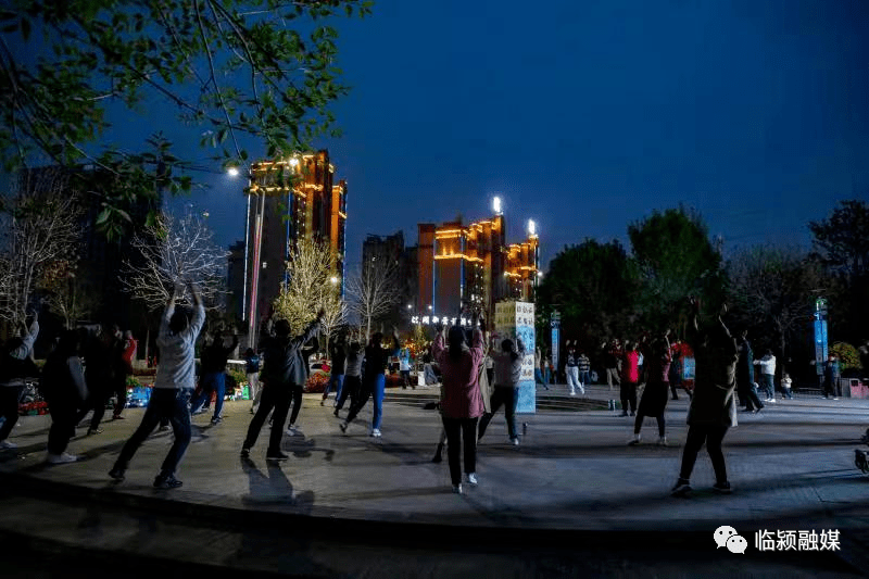 公园里、 广场上的彩灯把夜空照亮,人们伴着音乐,跳起了欢快的舞蹈,优美的舞姿吸引不少人观看,给原本热闹的广场又增添了几分美妙。