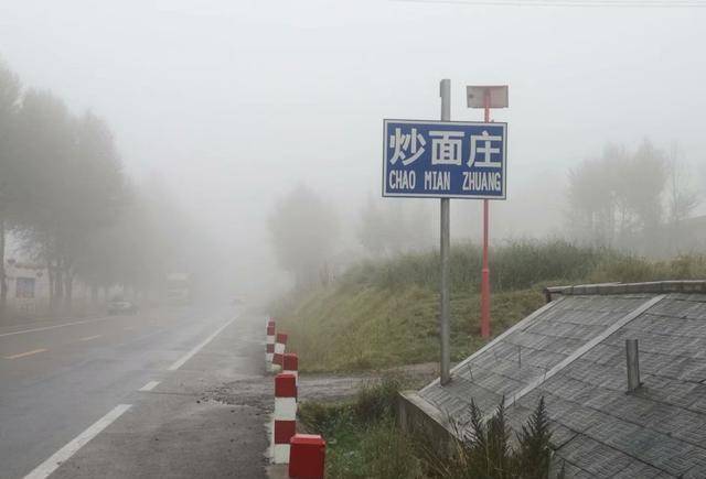 说这些话的时候,我们看到了浓雾中的炒面庄的路标。