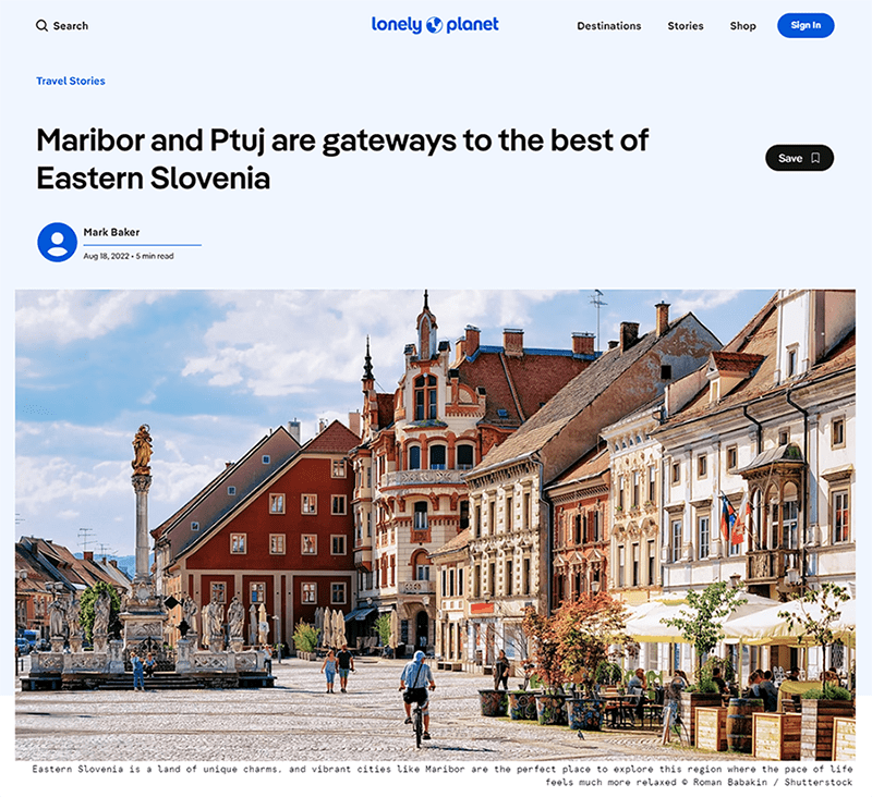 《孤独星球》(Lonely Planet)称赞斯洛文尼亚东部为具有独特魅力的土地,最好的探索起点就是马里博尔和普图伊。