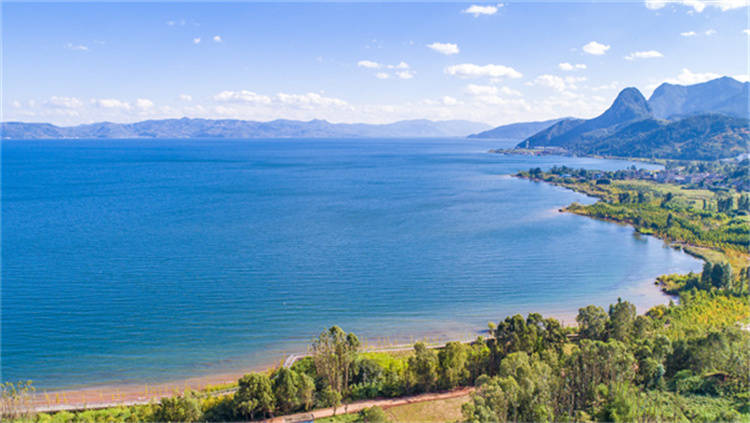 澄江市规划馆抚仙湖边航拍(王敏/摄)