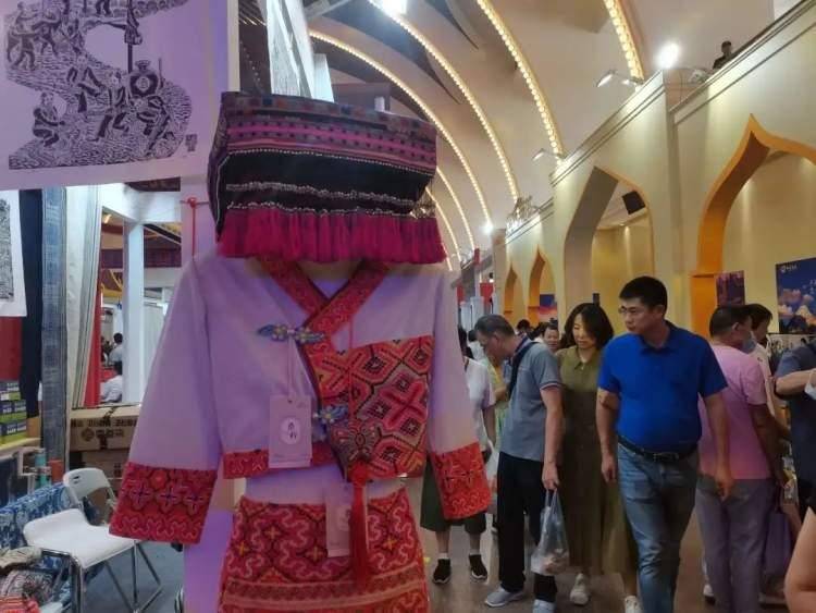 在中央大厅一楼的文山展区,除了三七产品之外,还有少数民族特色的服饰、小包、工艺品等,民族风情浓厚的特色产品让人身临其境体验到文山特色。
