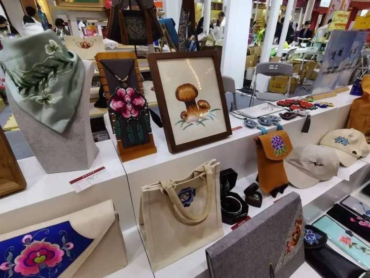 而在夷陵展区,拥有五百年历史的“牵花绣”手工刺绣产品展现了当地精细淳朴的民风。