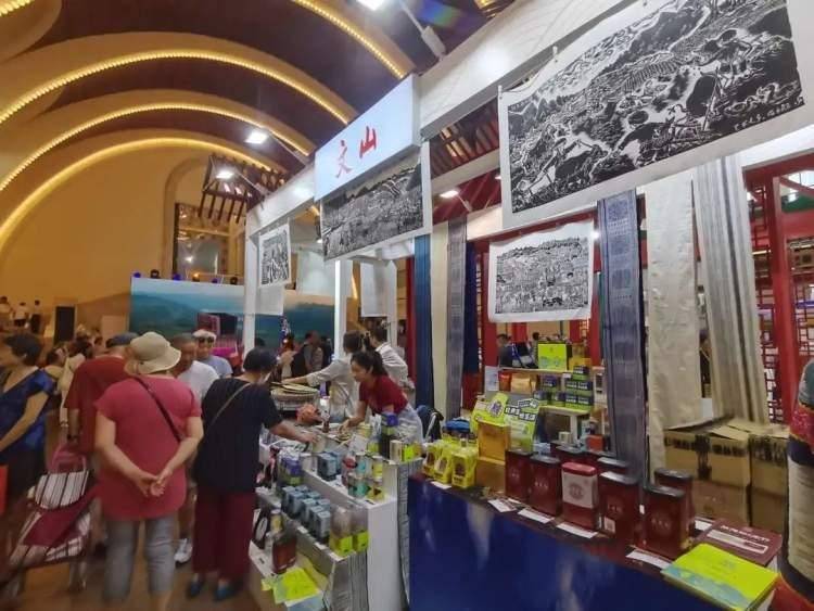 来到中央大厅二楼的文山展区,则有了更多“试吃”的体验,这里展示了来自文山其他特色产品,如花生、玫瑰花茶、饼等制品。