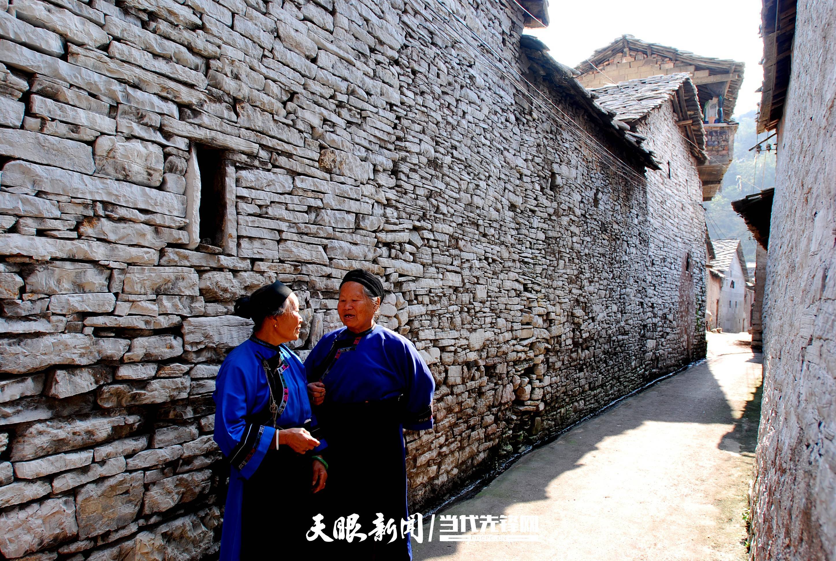 石头房顶层层叠叠,巷巷相通、户户相连,生活在古镇的屯堡人依旧保留了抬财神、演武地戏等古老习俗,变成独此一份的民俗风情,引人驻足。