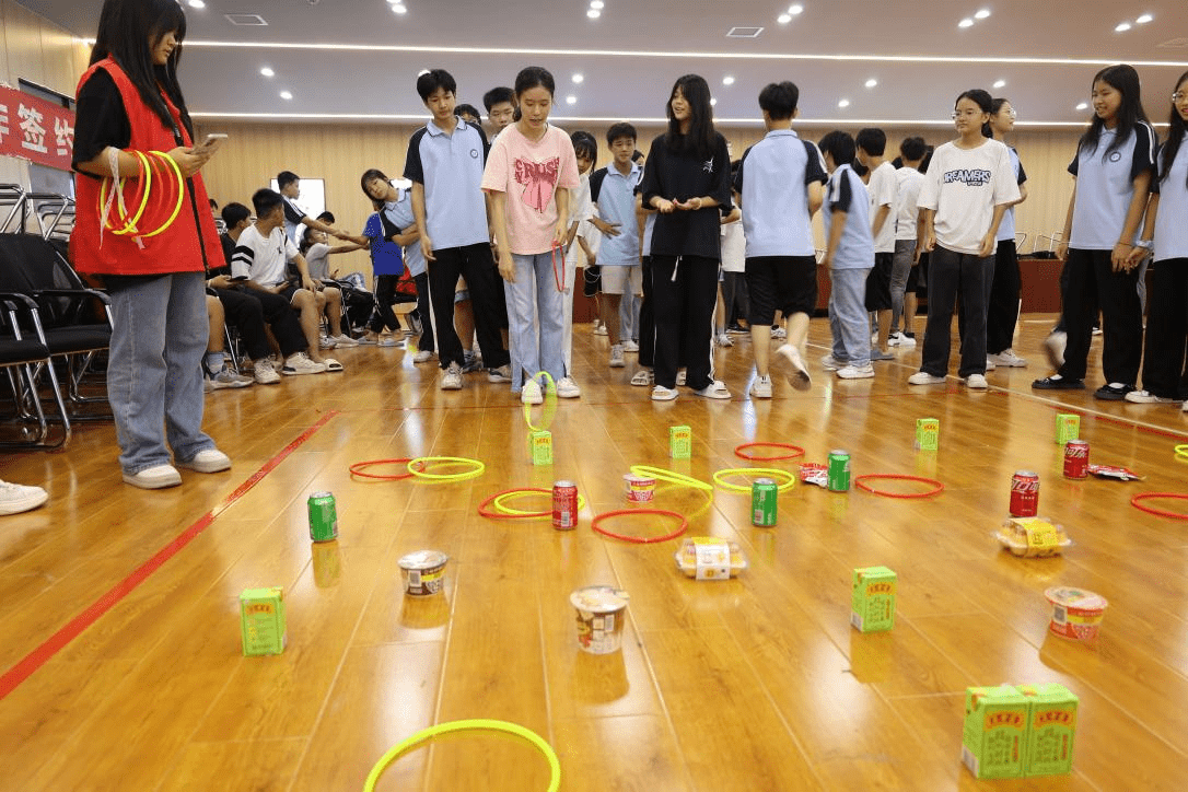 活动现场上,同学们站定位置,躬身、甩臂、投掷,“哎呀,偏了”“我投进啦,中了”“往前往前站一点”“稍稍弯腰啊”“哈哈,我五中四啦”……笑声、掌声 、欢笑声此起彼伏。