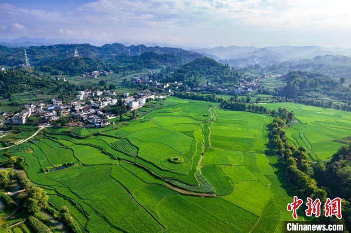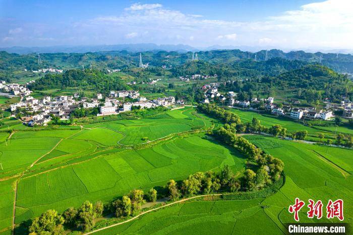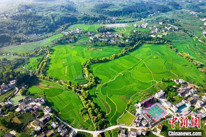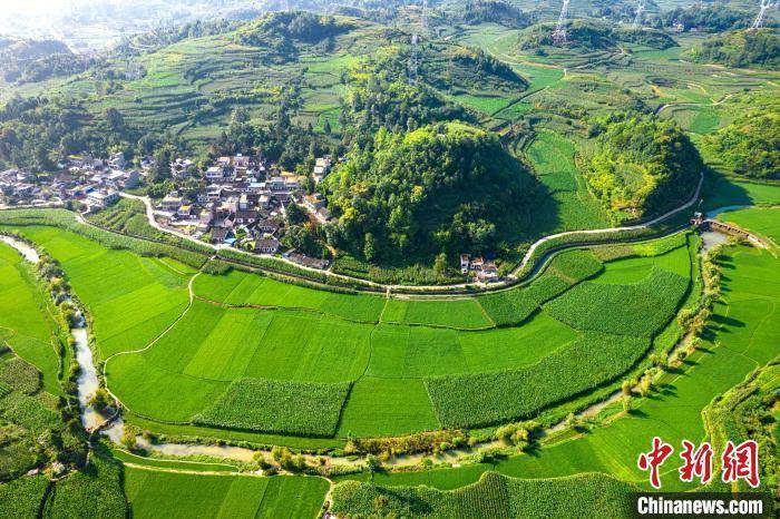 盛夏时节,地处乌蒙山腹地的贵州省黔西市柳岸水乡旅游景区内的生态田园绿意盎然,与民居、青山等相映成景。