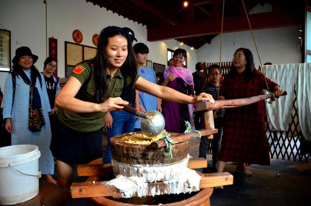 百坊园汇聚豆腐坊、酒坊、手工坊等民间作坊,原汁原味"复活"石磨制豆腐、土法酿酒、篾匠、箍桶等传统手工艺,再现北宋范仲淹任东台盐官期间甘港的兴旺景象。