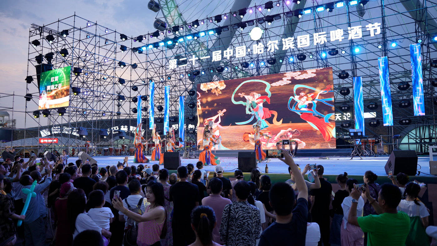 伴随着第二十一届中国·哈尔滨国际啤酒节的盛大开幕,市民和游客也多了一处消夏的好去处。尤其是园区的中心舞台,每天都上演精彩的演出,在丰富文化生活的同时,也向中外游客展现了哈尔滨的文化魅力。