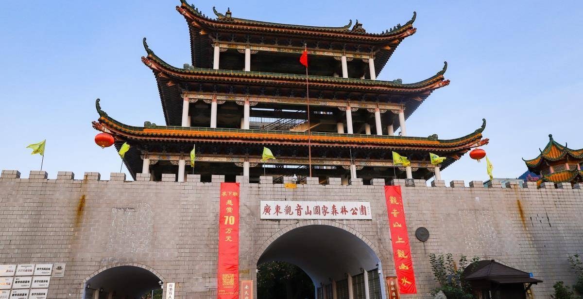 观音山,位于广东省东莞市樟木头镇。是是国家级的森林城市,也是一个AAAA旅游景区,其的森林覆盖率几乎达到了百分之百,各自珍贵的动植物也非常多。顾名思义,观音山这个名字也是跟佛教观世音菩萨有关的,据说观世音菩萨最开始到达中华土地的时候,从海上上岸就是在此第一次落脚,所以这里才被人们称为“南天圣地,百粤秘境”。