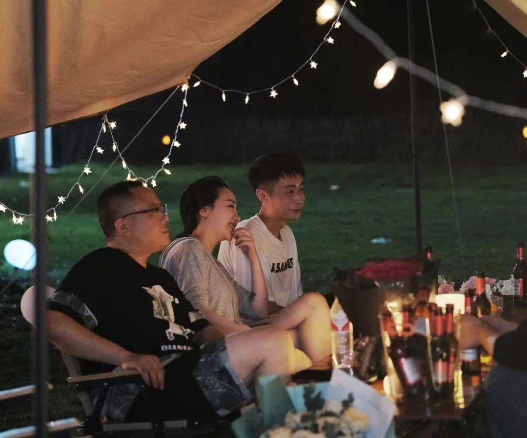 享受美味后,就在这草坪上,一起看场露天电影,周围的风声、树叶声、虫鸣声,就像天然的交响乐,为这个美好的夜晚伴奏。