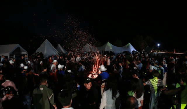 夜幕降临,篝火晚会在“鱼菜共生科技馆”草坪上精彩上演,大家在欢快的音乐中,跳起激情的锅庄舞。绚丽多彩的烟花秀,让游客久久沉浸在夜色朦胧的浪漫氛围中。