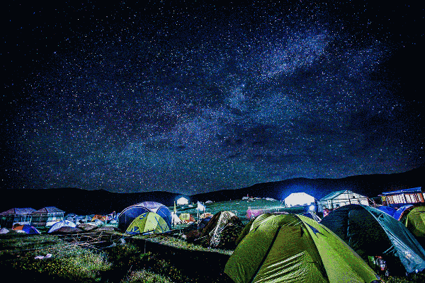 到了晚上,就在星空夜下点燃篝火,与藏家儿女和亲朋好友尽情在高山平地玩乐;等到暮色再晚一些,就枕于天地间看繁星满天,享受静谧的时光。
