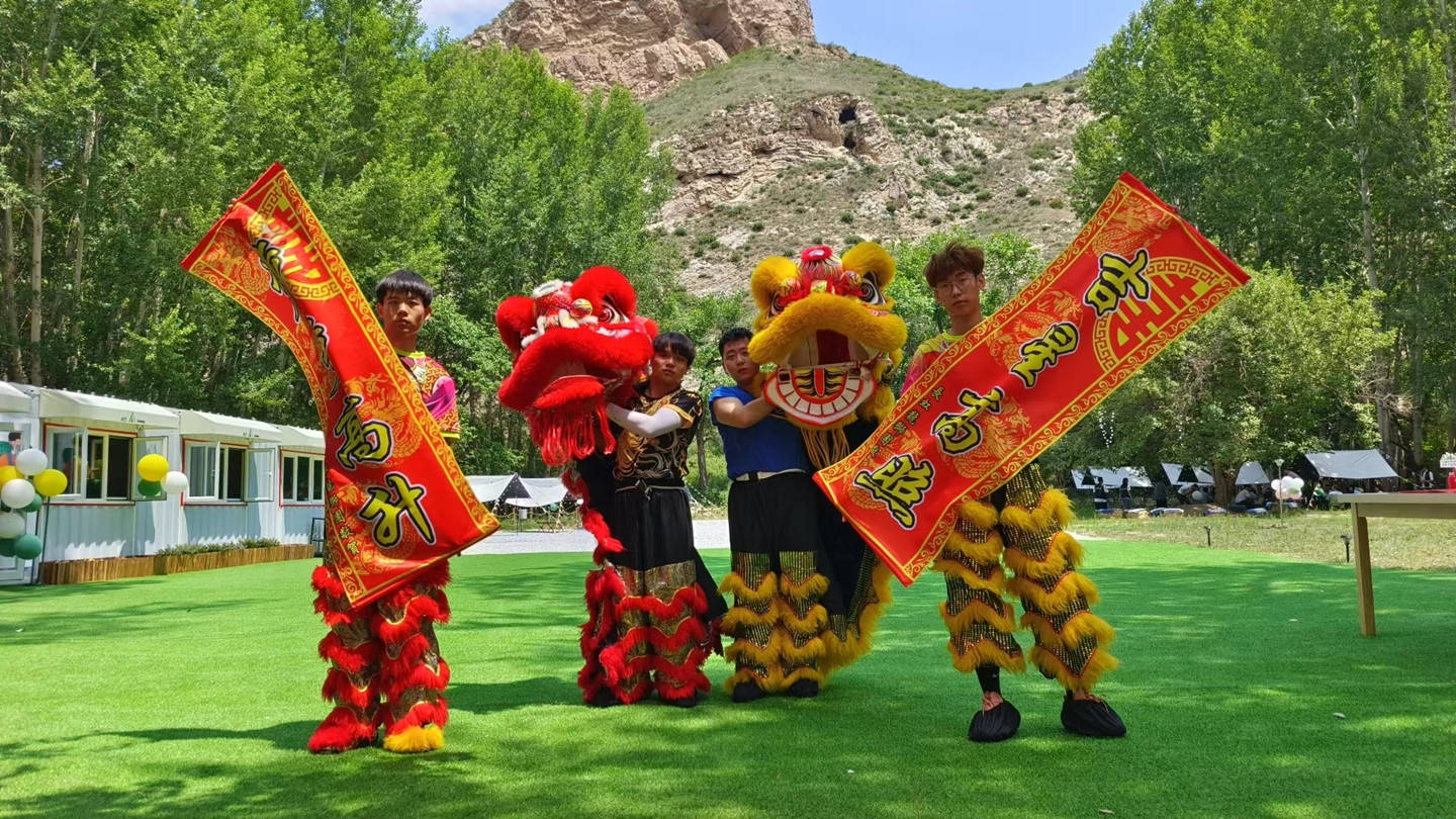 开营仪式上进行了精彩的舞狮表演,现场领导为祥狮点睛。表演结束后,领导们及到场嘉宾参观了营地。