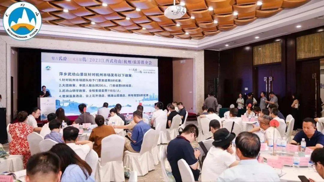 为进一步宣推江西萍乡武功山的特色文化旅游资源和产品,打响武功山“云中草原·户外天堂”旅游品牌,积极落实江西省委省政府“引客入赣”政策,抢抓长三角客源杭州区域客流,7月21日,由萍乡武功山旅游集团有限公司主办的“魅力武功·欢乐起‘杭’”2023江西萍乡武功山旅游推介会在杭州举办。