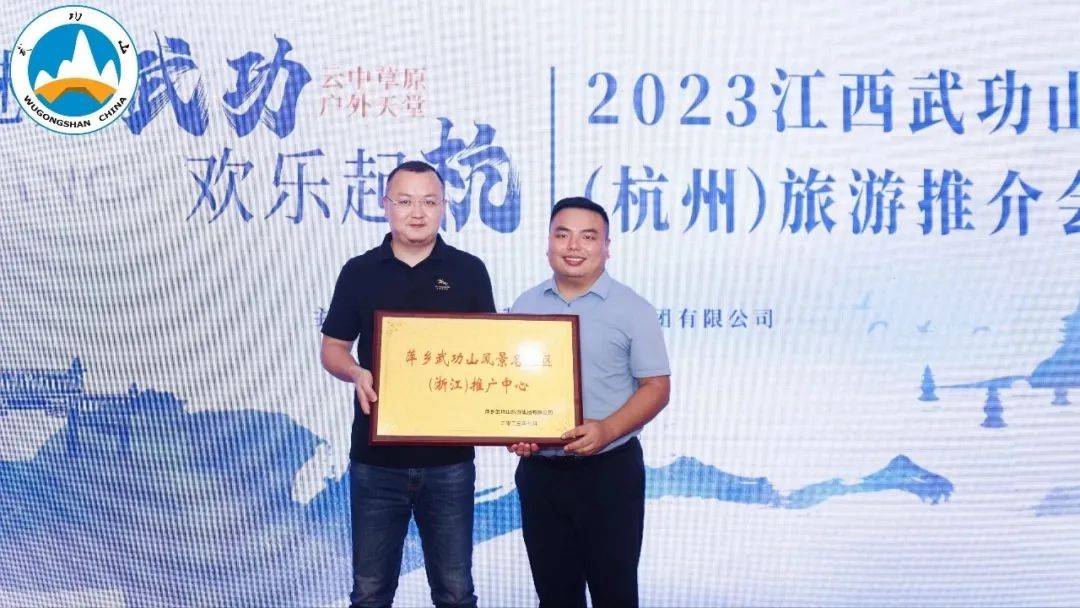 推介会现场,2023萍乡武功山文旅(杭州)推广季启动,“萍乡武功山风景名胜区(浙江)推广中心”正式成立。