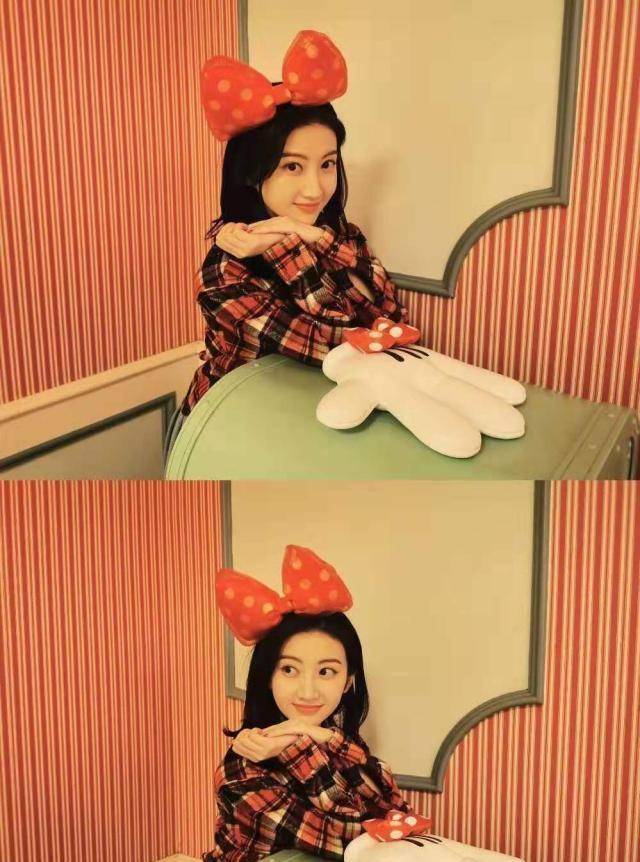 而在迪士尼数不清的经典角色当中,景甜在游玩的时候选择“米妮”这一角色打扮自己,穿着红色格子衬衫,头上戴着一个大大的米妮的头饰,桌子上是一个米妮的手套,背景红白色的竖条纹和米妮的装扮也十分符合。原来在景甜的心中,生活的是一个穿着小裙子的米妮,打扮过后的景甜,看上去更加像是一个小公主。