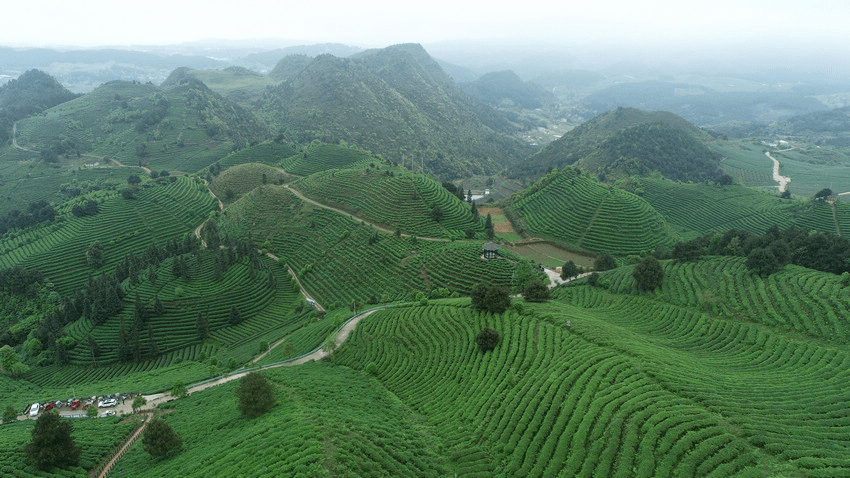 当夏季来临,丹寨土家族苗族自治县湄坨村一片青山如黛、天空湛蓝的景象。多雾照而享有国茶园以及梵净天池的盛誉,这座村庄始终将发展生态茶园作为致富的支柱产业。近年来,得益于茶园、梵净天池水库等景区,按照茶旅文化一体来打造,将茶园发展成景区。不仅实现了持续增收,也让家乡不断地朝美丽蜕变。