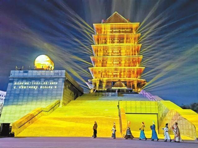 在黄河楼景区,平时只有周末观演的“黄河颂·大有兰州”多媒体实景演出开启了为期一个月的常态化巡演,每晚9时,璀璨的光影映衬着巍峨雄壮的黄河楼,在3D Mapping多媒体技术的加持下,带给游客难忘的光影夜游体验。而近日黄河楼入园游客较平时也增长了3倍之多,登楼参观人数日均达到3000人次。