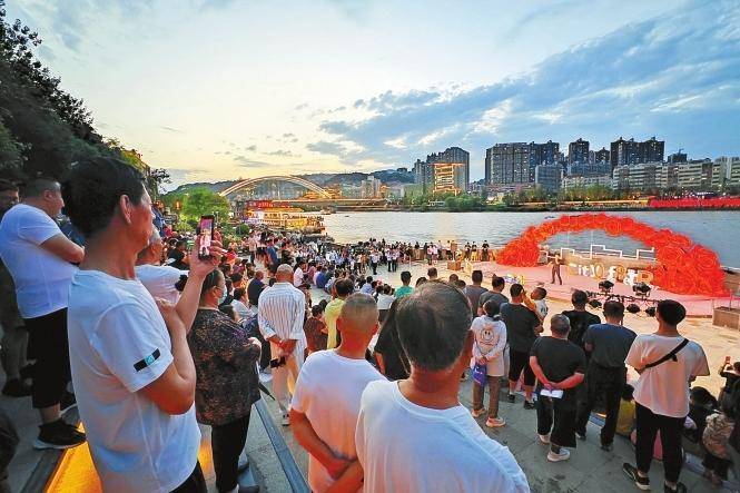 不仅如此,兰州黄河沿岸茶摊上座率几乎达到饱和,晚间8时左右更是出现“一桌难求”的现象;盐场堡码头的露营基地及休闲茶饮吧也是客源爆满,晚间时段的座位基本需要提前一天预订,营地特色演出、荧幕电影、自选夜市等游娱业态,让码头的夜晚充满了十足的烟火气。