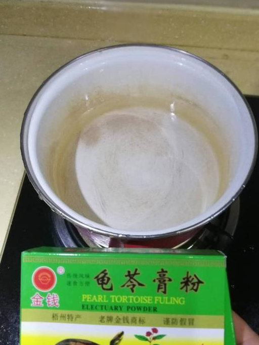 1、龟苓膏粉这里我们用到20克。先上锅煮500克清水。