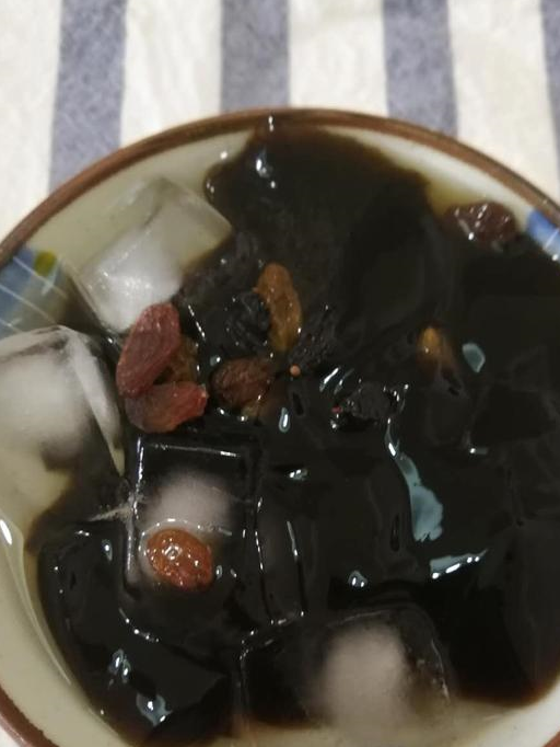 6龟苓膏自带中药的苦涩味,有食用的时候,我们会加入一些蜂蜜或红糖,再加一些冰块、葡萄干、盐焗花生米,味道综合一下龟苓膏的中药味道,更加好吃。