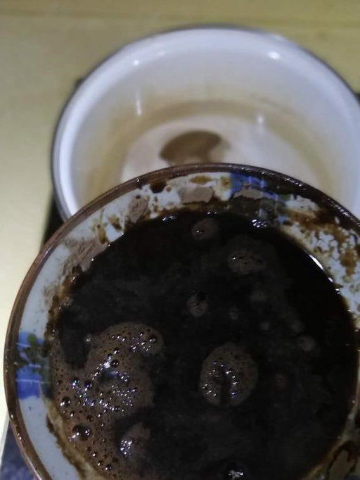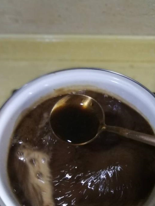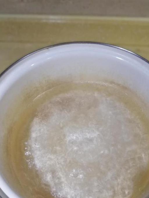 3水开后,在锅入慢慢倒入刚拌匀的糊状。