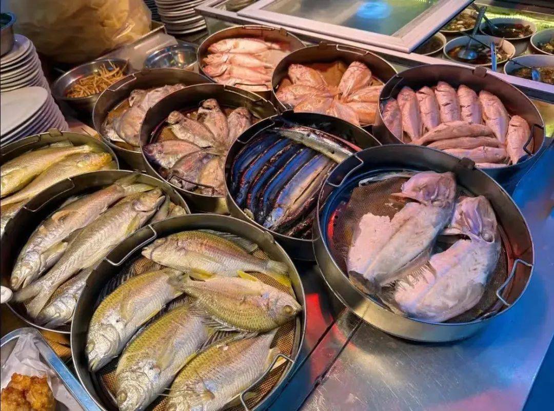 在打冷档里,必吃之一就是大眼鸡鱼饭。大眼鸡鱼的刺很少,肉质嫩滑,你可以直接蘸上普宁黄豆酱,享受它甘润鲜美的味道,淡而不失风味,鲜嫩可口。